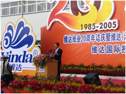 Chairman Li reviewed Vinda’s 20-year achievements and talked about the company’s future development plan, which was to achieve capacity of 180,000 tons by Jun 2006, 300,000 tons by 2010 and 500,000 tons in the long run.